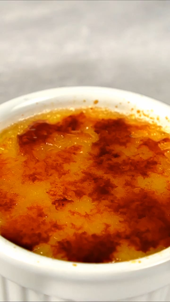 Sprinkle the sugar over each ramekin and caramelize it with a blow torch or using the grill function in the oven.